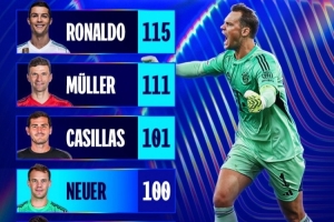 目前,諾伊爾在歐冠已經(jīng)收獲100場(chǎng)勝利,成為第四名做到這一點(diǎn)的球員,在他身前是C羅(115勝)、托馬斯-穆勒(111勝)和卡西利亞斯(101勝)。