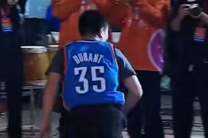 嚴(yán)父型球迷!徐靜雨場(chǎng)上怒換杜蘭特雷霆球衣 追夢(mèng)一旁鼓掌大笑