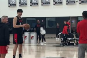 上場爆發(fā)后整個人松弛感拉滿~小吧探班開拓者訓(xùn)練 楊瀚森加練罰球