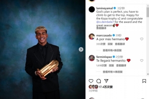 亞馬爾蟬聯(lián)科帕獎(jiǎng),并在金球獎(jiǎng)評(píng)選中排名第二位,亞馬爾社媒曬出與科帕獎(jiǎng)杯的合照,并寫道:“上帝的計(jì)劃是完美的,你必須攀登才能抵達(dá)頂峰。”