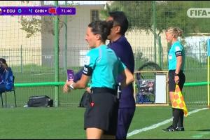 體育資訊10月24日訊 U17女子世界杯小組賽C組,厄瓜多爾女足U17vs中國(guó)女足U17。比賽第73分鐘,中國(guó)隊(duì)教練組申請(qǐng)VAR挑戰(zhàn),認(rèn)為對(duì)手禁區(qū)內(nèi)手球。裁判觀看回放后判認(rèn)定不是點(diǎn)球。