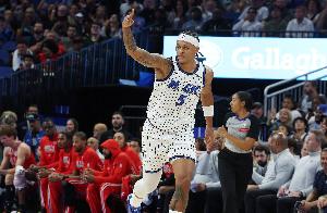 此役魔術(shù)前鋒班凱羅出場36分鐘21投7中,三分4中1、罰球11中9拿到全場最高24分外加10籃板1助攻2蓋帽,正負(fù)值-2。