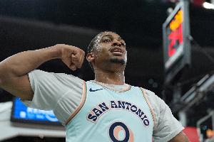 在上半場的比賽中,馬刺球員凱爾登·約翰遜手感火熱,他替補出戰(zhàn)了14分鐘,3投3中,罰球4中4,得到10分1籃板1搶斷,沒有失誤。