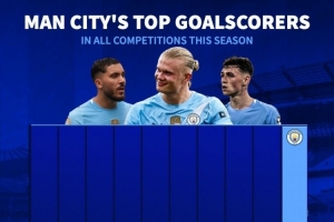 本賽季曼城隊內(nèi)射手榜: