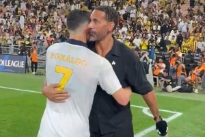 C羅的前曼聯(lián)隊友費迪南德也來到現(xiàn)場觀戰(zhàn),并和C羅擁抱寒暄。