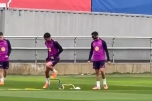 David Ibá?ez在社交媒體曬出巴薩訓練視頻,并配文寫道:“巴薩今日進行訓練,備戰(zhàn)對陣塞爾塔的比賽。埃里克-加西亞佩戴面具訓練,克里斯滕森明日也可能隨隊出征?!?/p>