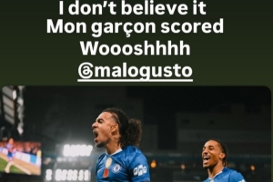 他的隊(duì)友科爾維爾也通過社媒曬照調(diào)侃:“我不相信!我的男孩進(jìn)球了,嗖!@古斯托”。