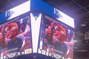 比賽期間,大屏幕曬出馬刺名宿“海軍上將”大衛(wèi)·羅賓遜來到現(xiàn)場看球的畫面,觀眾們報以熱烈歡呼聲。