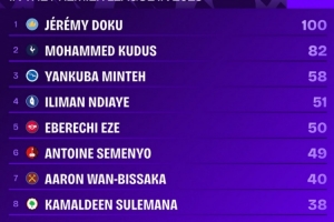 體育資訊11月10日訊 英超第11輪比賽,多庫完成7次過人,打進(jìn)1球,幫助曼城3-0擊敗利物浦。據(jù)Squawka統(tǒng)計,多庫是2025年首位英超成功過人達(dá)到100次的球員。