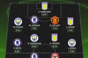 中場(chǎng):內(nèi)托(切爾西)、尼科-岡薩雷斯(曼城)、奧納納(維拉)、多庫(kù)(曼城)