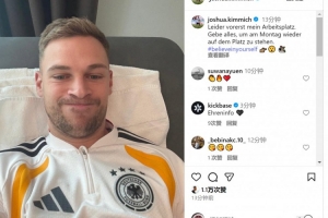 基米希社媒曬出自己在醫(yī)療室的照片,并寫道:“遺憾的是這里暫時(shí)成為了我的工作場所,我會竭盡全力,爭取在下周一(對陣斯洛伐克)重返賽場?!?/p>