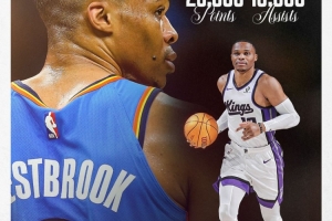 體育資訊11月16日訊 在昨天NBA杯國王VS森林狼的比賽中,威少生涯總助攻數(shù)突破10000次大關,成為繼詹姆斯之后,NBA歷史第二位生涯取得25000分和10000助攻的球員。