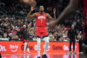 首節(jié)比賽,火箭前鋒凱文·杜蘭特發(fā)揮出色,他多次憑借個人能力單打硬解,幫助球隊緊咬比分!