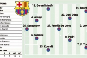 在邊路,一切跡象表明孔德和馬丁將會(huì)首發(fā),而巴爾德則蓄勢待發(fā),等待獲得一些出場時(shí)間。與巴爾德情況類似的是亞馬爾,他將在缺席一個(gè)月后于本周回歸。原則上,在拉菲尼亞缺陣后,弗里克開局將押注于由拉什福德、萊萬多夫斯基和費(fèi)蘭-托雷斯組成的鋒線三叉戟。