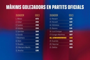 體育資訊9月29日訊 西甲第7輪,巴薩2-1擊敗皇家社會,萊萬破門,收獲巴薩生涯第105球,追平內(nèi)馬爾、埃瓦里斯托和薩爾杜亞,位列隊史第18位。