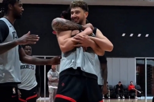 體育資訊10月2日訊 近日在火箭隊內(nèi)的訓(xùn)練中申京面對亞當(dāng)斯的防守貢獻(xiàn)了一記暴扣,之后又在后者面前投進(jìn)了一個三分,結(jié)果慘遭海王“鎖喉”。