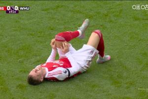 體育資訊10月04日訊 英超第7輪,阿森納vs西漢姆聯(lián)。比賽第19分鐘,厄德高拼搶中膝蓋與對手碰撞,倒在地上十分痛苦!