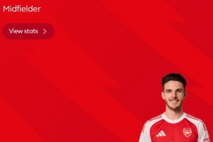 面對舊主破門,英超官方:賴斯當選阿森納2-0西漢姆全場最佳球員